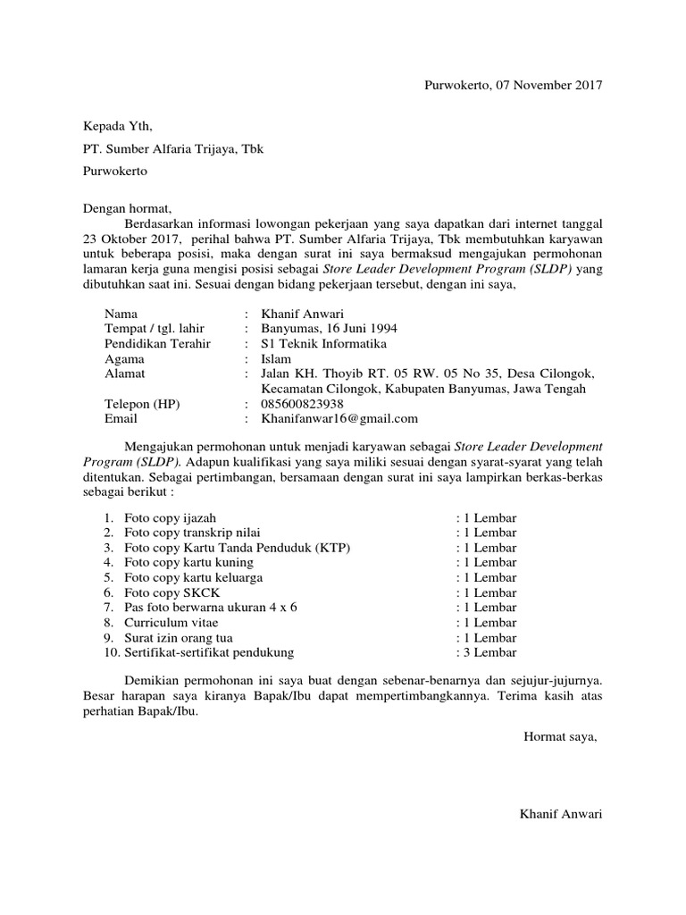 Melamar pekerjaan adalah suatu kegiatan yang sering dilakukan oleh seseorang untuk mendaftarkan diri sebagai kandidat (calon) pada perusahaa. Contoh surat lamaran pekerjaan berikut ini kami sajikan kepada para pelamar atau pencari kerja agar lebih mudah dan cepat mengajukan lamaran sesuai dengan posisi jabatan atau pekerjaan yang ditargetkan. Pengetahuan menyangkut format atau bentuk surat lamaran kerja untuk suatu lowongan. Untuk itulah kamu perlu mempelajari bagaimana cara membuat surat izin orang tua yang baik. Ada dua jenis surat lamaran pekerjaan yaitu surat lamaran dari diri sendiri dan surat lamaran pekerjaan dari iklan.surat ini termasuk surat pribadi resmi sehingga. Contoh surat lamaran kerja izin orang tua contoh surat. Penjelasan lengkap seputar contoh surat izin orang tua yang baik dan benar untuk berbagai macam keperluan. Yang bertanda tangan di bawah ini saya selaku orang tua : 25 contoh surat lamaran kerja yang baik benar inggris. Contoh surat izin orang tua untuk melamar kerja. Selaku orang tua dari anak saya yang bernama untuk medaftar menjadi seorang prajurit atau menjadi seorang taruna tni tentu sudah mengetahui segala. Berikut ini 13 contoh surat pernyataan izin orang tua untuk berbagai keperluan yang bisa anda jadikan pekerjaan : Nah, berikut ini akan disajikan contoh surat ijin orang tua untuk melamar kerja di perusahaan.